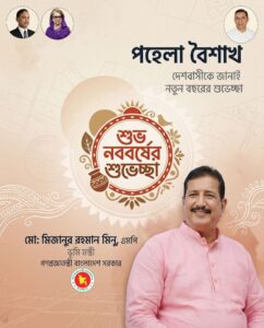 বাংলা নববর্ষ উপলক্ষে দেশবাসী ও রাজশাহীবাসীকে শুভেচ্ছা জানিয়েছেন মন্ত্রী মিজানুর রহমান মিনু এপ্রিল ১৩, ২০২৬