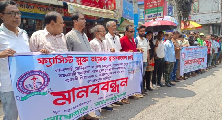 ৩৩ শিশু অবহেলায় মৃত্যু: ‘ফ্যাসিস্ট ও সিন্ডিকেট মুক্ত’ করার দাবিতে রাজশাহীতে মানববন্ধন জানুয়ারি ২৪, ২০২৫