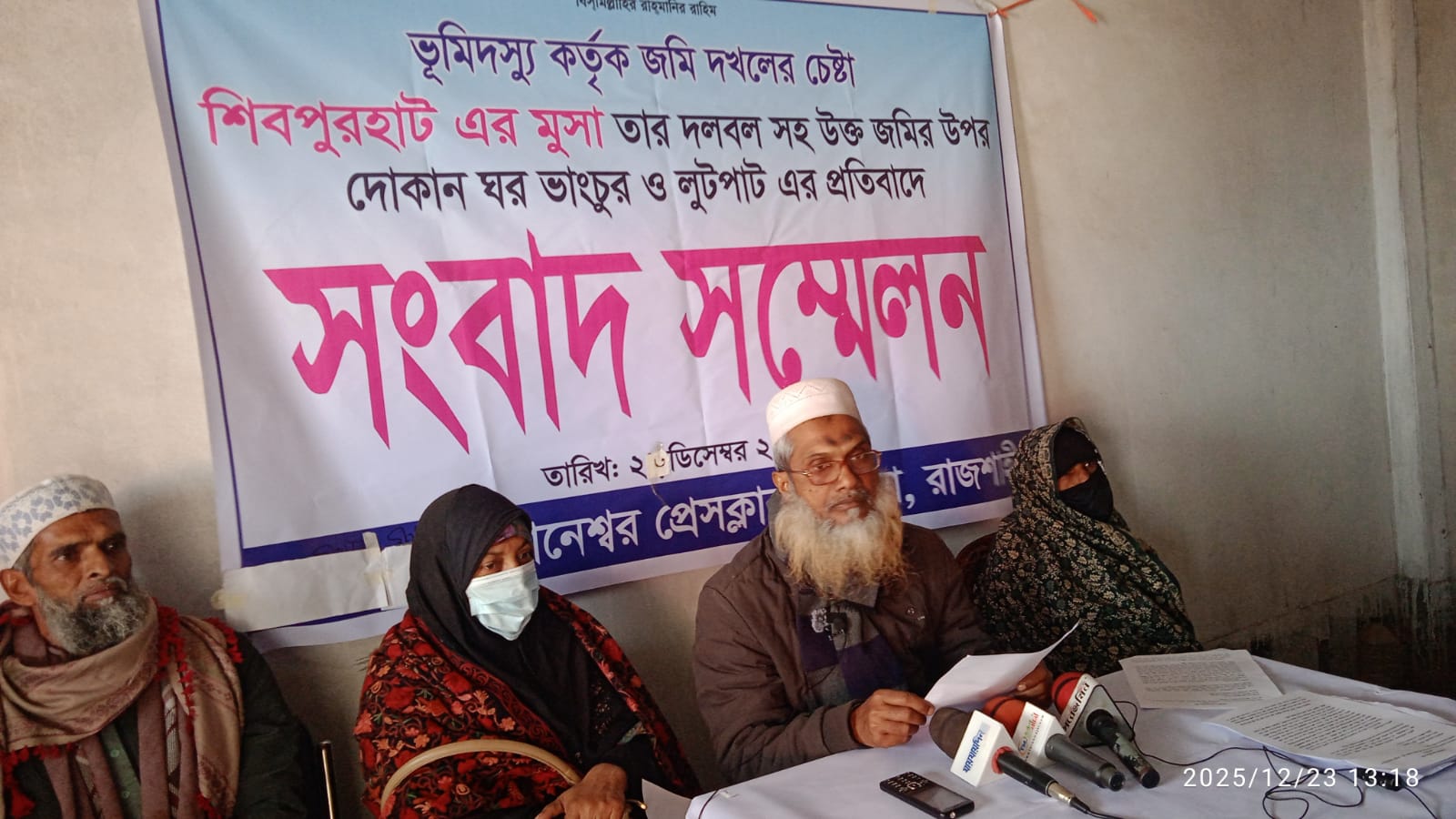 আদালতের নিষেধাজ্ঞা অমান্য করে শিবপুর হাটে জমি দখলের চেষ্টা দোকান ভাঙচুর ও লুটপাটের অভিযোগে সংবাদ সম্মেলন