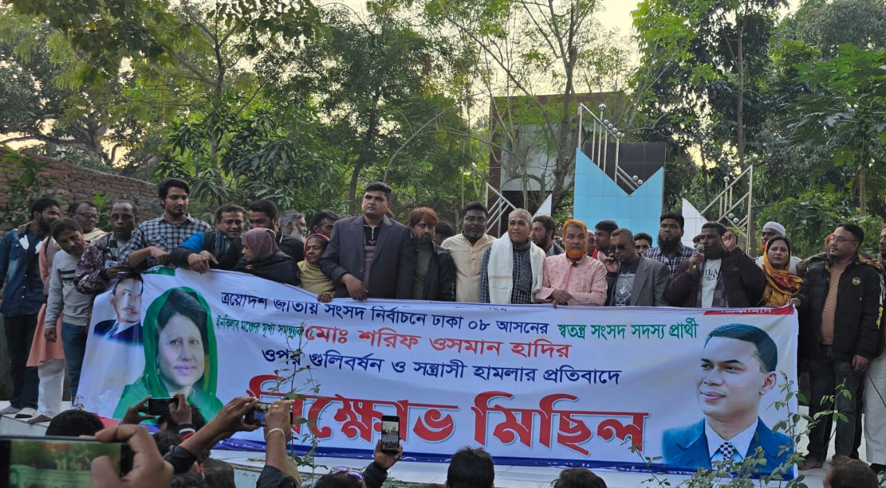 ওসমান হাদির ওপর গুলিবর্ষণের প্রতিবাদে চারঘাটে বিএনপির বিক্ষোভ মিছিল ও সমাবেশ