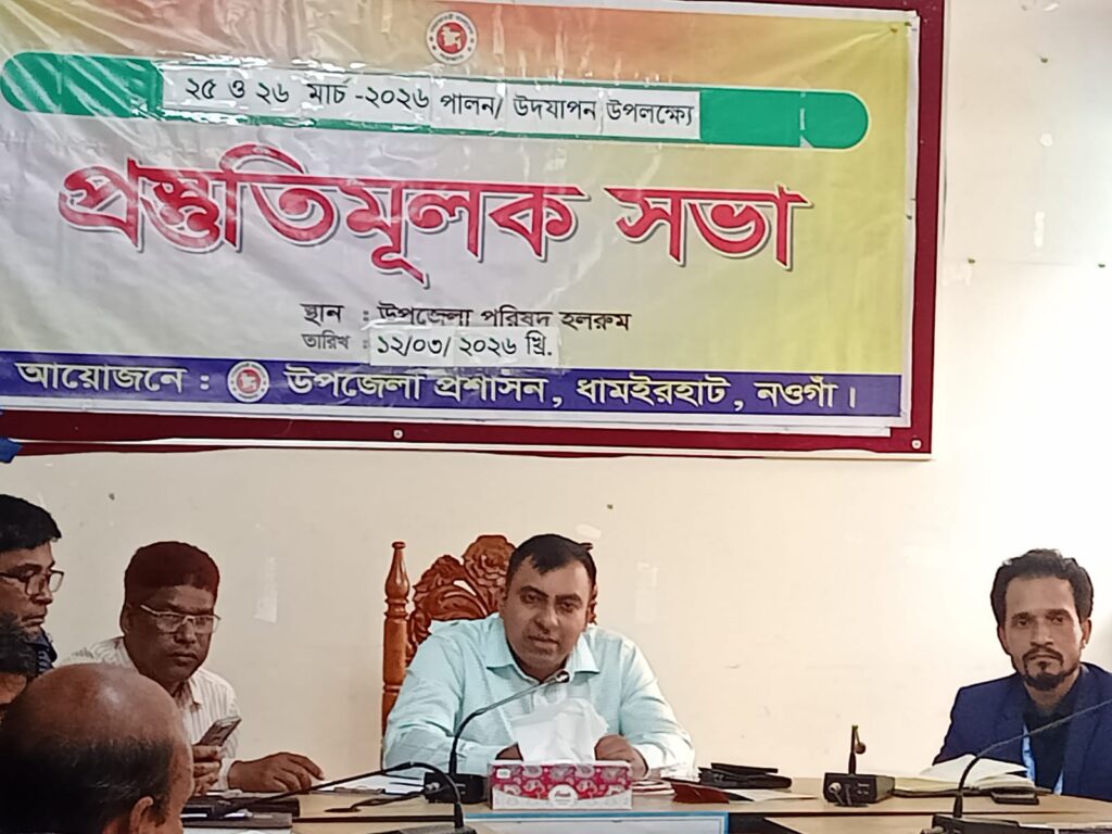 ধামইরহাট ( নওগাঁ) প্রতিনিধি : নওগাঁর ধামইরহাটে ২৫ শে মার্চ গনহত্যা ও ২৬ শে মার্চ মহান স্বাধীনতা দিবস যথাযথ মর্যাদায় উদযাপন উপলক্ষে প্রস্তুতি মুলক সভা অনুষ্ঠিত হয়েছে।