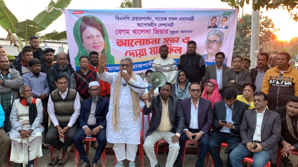 সোমবার বিকেলে মোহনপুরের মোহনপুরের মৌগাছি বাজারে রাজশাহীর মোহনপুর উপজেলার মৈগাছী ইউনিয়ন বিএনপি ও এর অঙ্গ-সহযোগী সংগঠনের উদ্যোগে বেগম খালেদা জিয়ার আশু রোগমুক্তি কামনায় আয়োজিত দোয়া মাহফিলে প্রধান অতিথির বক্তব্যে তিনি এসব কথা বলেন।