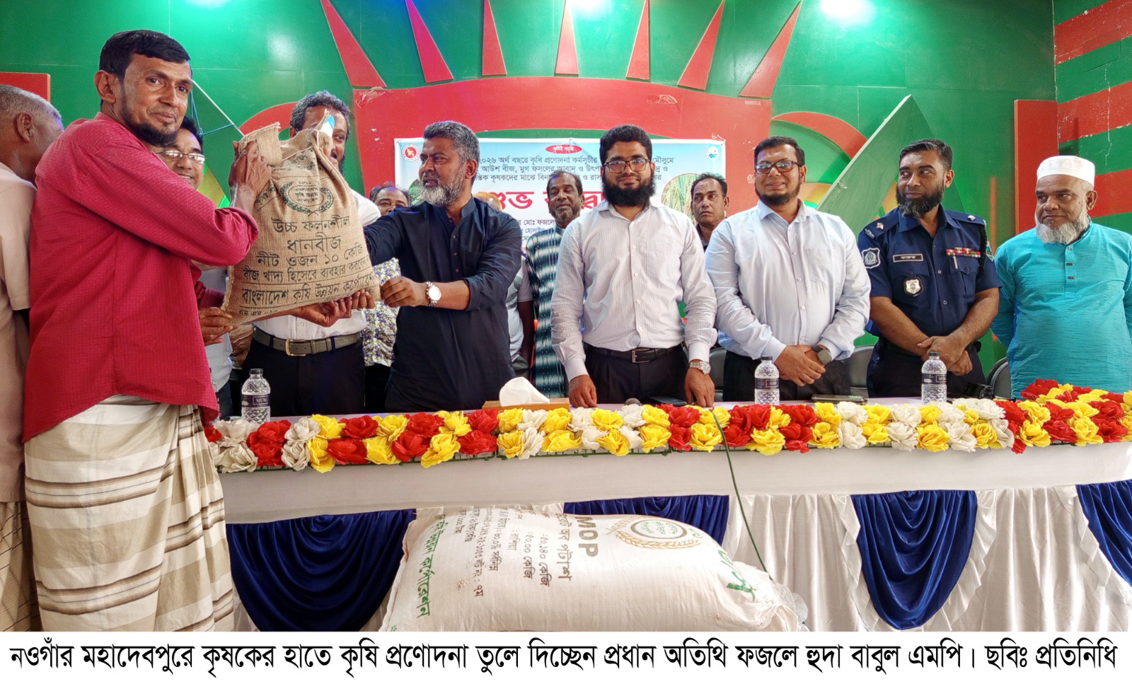 লাবিবা খানম লিছাঃ মাহদেবপুরে কৃষি প্রণোদনা কর্মসূচীর আওতায় বিনামূল্যে সার ও বীজ বিতরণের উদ্বোধন করা হয়েছে। ১১ এপ্রিল শনিবার দুপুরে উপজেলা পরিষদ মিলনায়তনে প্রধান অতিথি হিসেবে উপস্থিত থেকে এসব সার বীজ বিতরণের উদ্বোধন করেন ৪৮, নওগাঁ-৩ (মহাদেবপুর-বদলগাছী) আসনের জাতীয় সংসদ সদস্য মোঃ ফজলে হুদা। উপজেলা কৃষি সম্প্রসারণ অফিসার মোঃ জাহাঙ্গীর আলমের সঞ্চালনায় এবং উপজেলা নির্বাহী অফিসার মোঃ আরিফুজ্জামানের সভাপতিত্বে অনুষ্ঠিত এ অনুষ্ঠানে স্বাগত বক্তব্য রাখেন উপজেলা কৃষি অফিসার কৃষিবিদ হোসাইন মোহাম্মদ এরশাদ। ২০২৫-২৬ অর্থবছরে কৃষি প্রণোদনা কর্মসূচীর আওতায় খরিপ-১ মৌসুমে উফষি আউশ বীজ, মুগ ফসলের আবাদ ও উৎপাদান বৃদ্ধির লক্ষে ক্ষুদ্র ও প্রান্তিক কৃষকদের মাঝে এসব সার ও বীজ বিতরণ করা হয়। উপজেলা কৃষি অফিস সূত্রে জানা গেছে উপজেলার ১০ ইউনিয়নে এবার আউষ চাষের জন্য ১২ হাজার ৭শত কৃষকের মধ্যে বিনামূল্যে সার ও বীজ প্রদান করা হয়।#