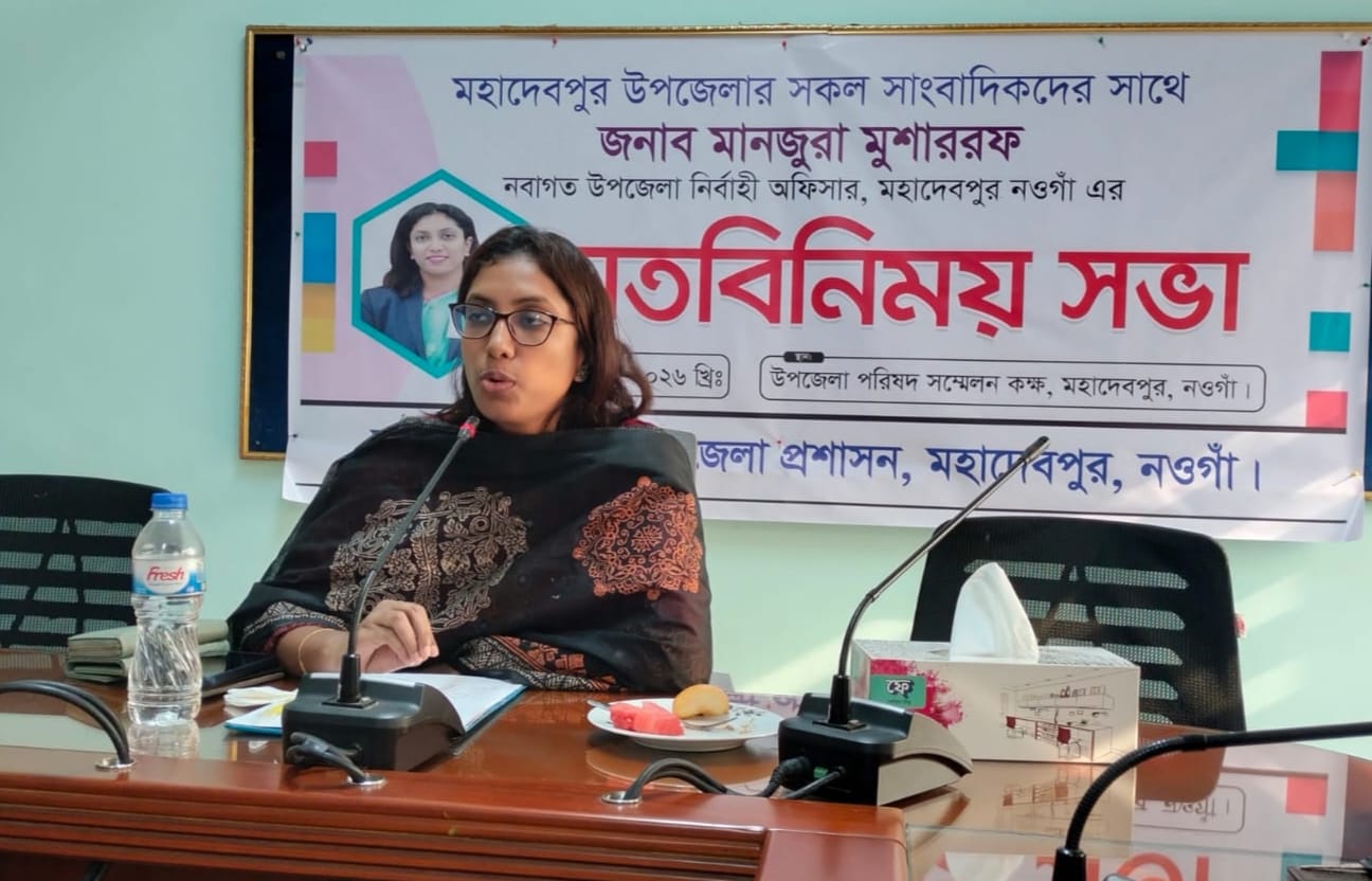 লাবিবা খানম লিছা: মহাদেবপুরে উপজেলার সকল সাংবাদিকদের সাথে মতবিনিময় করলেন নবাগত উপজেলা নির্বাহী অফিসার মানজুরা মুশাররফ। ১৫ এপ্রিল বুধবার বিকেলে উপজেলা নির্বাহী অফিসারের সভাকক্ষে এ মতবিনিময় সভা অনুষ্ঠিত হয়। উপজেলা নির্বাহী অফিসার সূচনা বক্তব্যে উপস্থিতি সকল সাংবাদিকের দীর্ঘায়ু সুস্বাস্থ্য ও সফলতা কামনা করে পরিচয় জানতে চান। পরিচয় পর্ব শেষে মহাদেবপুরের গন মানুষের প্রত্যাশা সাংবাদিকদের মাধ্যমে জানার জানার জন্য ফ্লোর ওপেন করে দেন। এ সময় সাংবাদিকরা বর্তমান দেশের অন্যান্য স্থানের মত কৃত্রিম জ্বালানি সংকট দূরীকরণ, উপজেলার যানজট নিরসনে বিশেষ করে পোস্ট অফিসের প্রাচীর অপসারণ করে গোল চত্বর তৈরি অথবা ওভার ব্রিজ নির্মাণ তা নাহলে কবরস্থানের পশ্চিমপাশের রাস্তা এবং শহীদ মিনারের পূর্ব পাশে সংযোগ স্থাপনের জন্য মূল সড়কে আন্ডার পাস নির্মাণের প্রস্তাব দেন । জিহাদ শিশু পার্কের অসমাপ্ত কাজ সমাপ্ত করা। এছাড়া সরু রাস্তায় অতিরিক্ত অটোরিকশা বা চার্জার ভ্যান রাখতে না দেওয়া, বাসস্ট্যান্ডে সিএনজি অটো ভ্যান রিক্সা অপসারণ , বিভিন্ন রাস্তার পাশে ফুটপাত দখল করে যে সকল দোকান বসে তা অপসারণ, আত্রাই নদীতে বজ্র ফেলা বন্ধ করা, লোহার ব্রিজ সংস্কার , উপজেলা কেন্দ্রীয় পাঠাগারে নিয়োজিত গ্রন্থাগারিকের