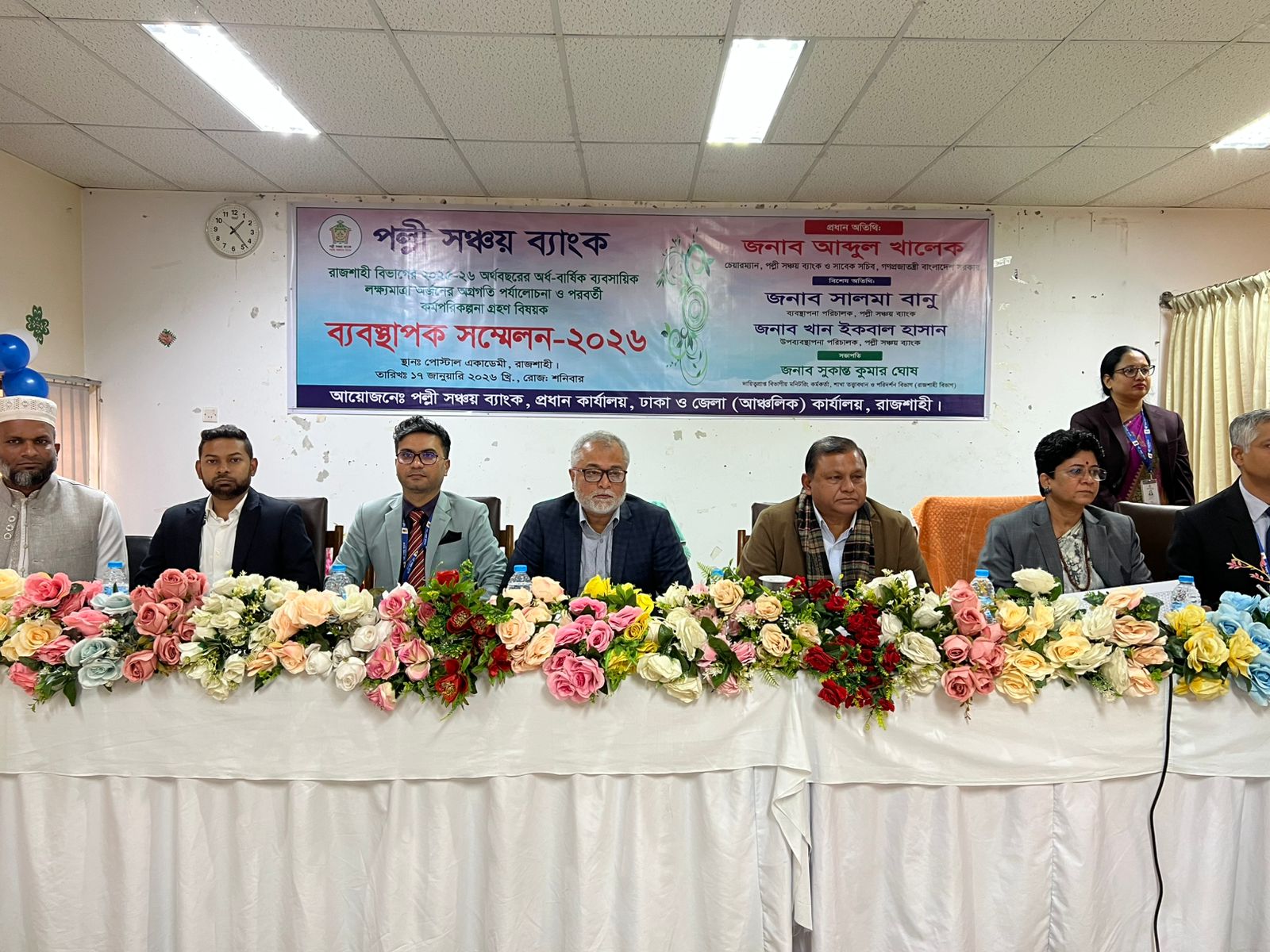 স্টাফ রিপোর্টার: পল্লী সঞ্চয় ব্যাংকের রাজশাহী বিভাগের আওতাধীন শাখাসমূহের ২০২৫-২৬ অর্থবছরের অর্ধ-বার্ষিক ব্যবসায়িক লক্ষ্যমাত্রা অর্জনের অগ্রগতি পর্যালোচনা ও পরবর্তী কর্মপরিকল্পনা নির্ধারণের লক্ষ্যে ‘ব্যবস্থাপক সম্মেলন-২০২৬’ অনুষ্ঠিত হয়েছে। আজ শনিবার (১৭ জানুয়ারি) রাজশাহীর পোস্টাল একাডেমীতে দিনব্যাপী এই সম্মেলন অনুষ্ঠিত হয়।
