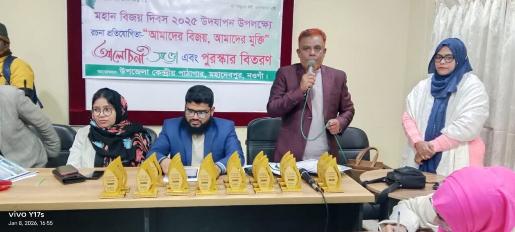মহাদেবপুর পাঠাগারে রচনা প্রতিযোগিতার পুরস্কার বিতরণ